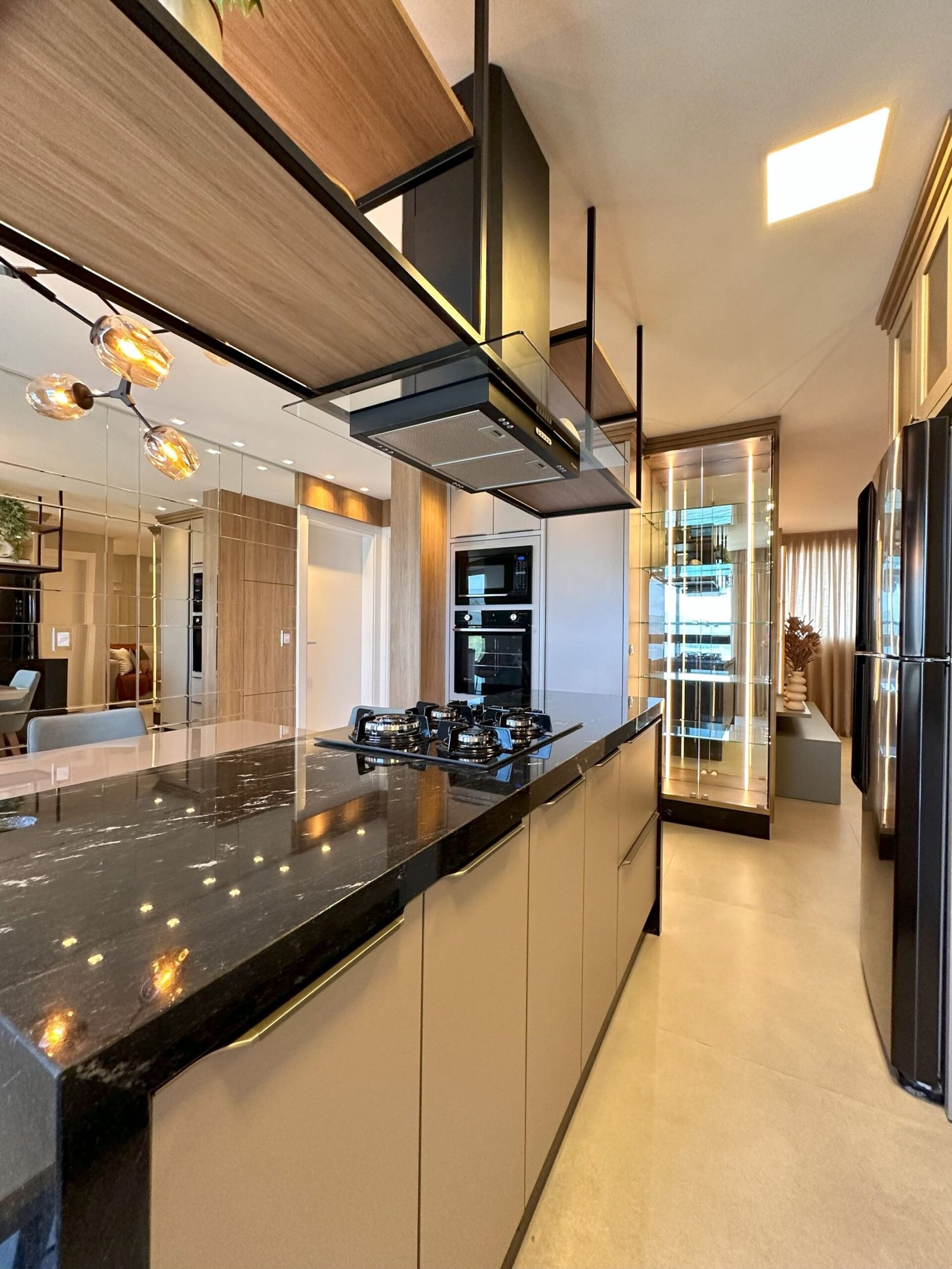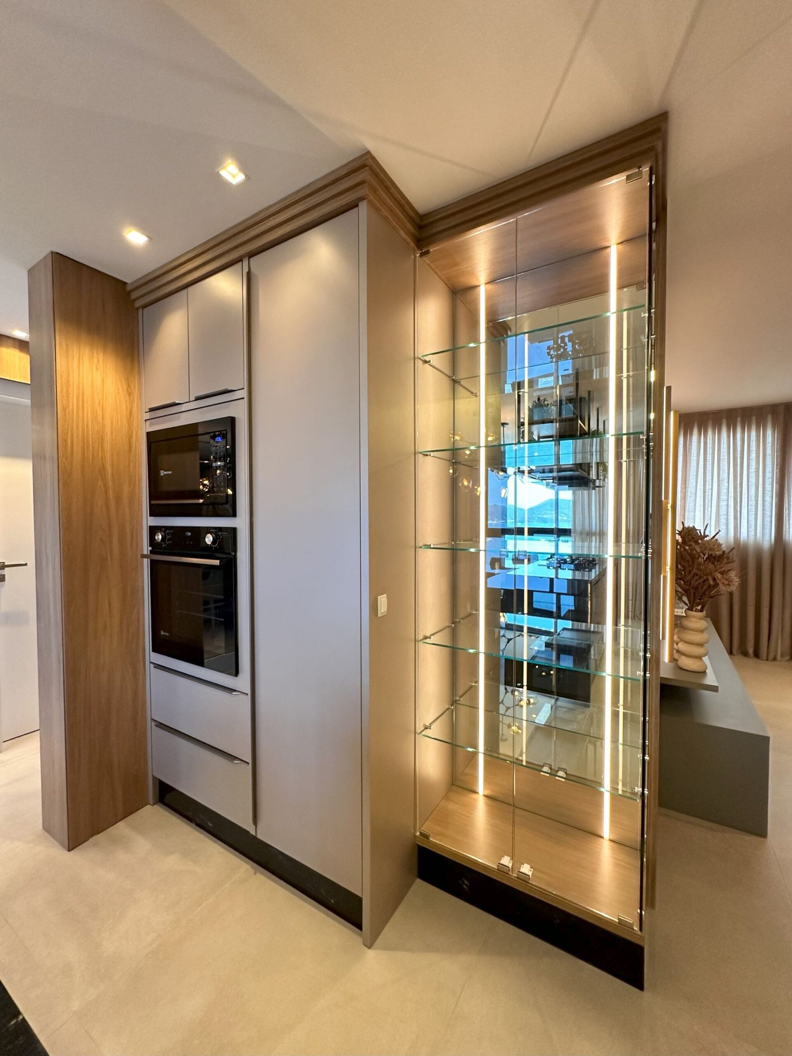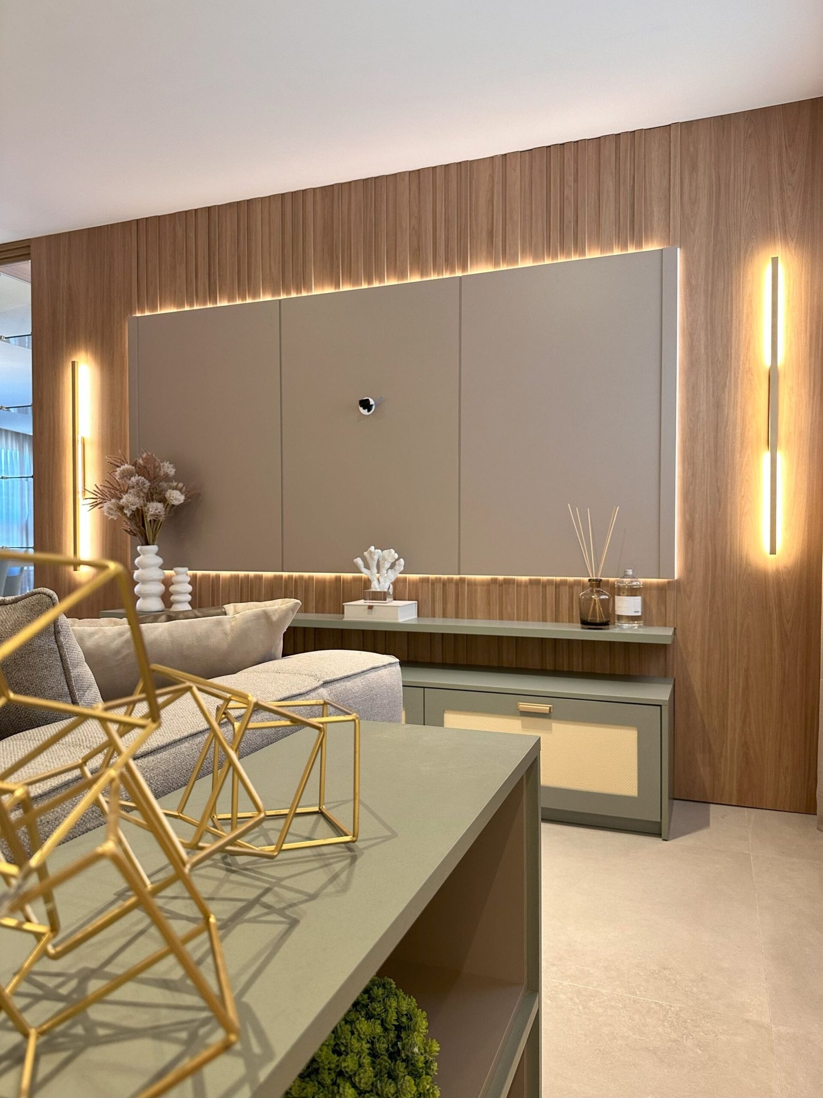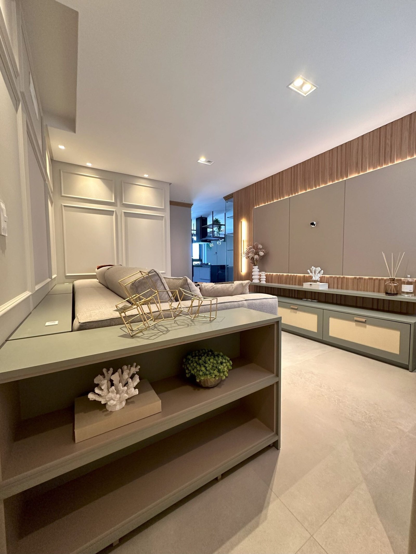 Para este projeto foi adotado um estilo moderno, trazendo aconchego através do amadeirado e uma decoração com objetos e cores que remetem à natureza dentro dos ambientes. Trata-se de um frente mar compacto, mas que possui tudo o que precisa para não deixar de ser funcional e lindo.