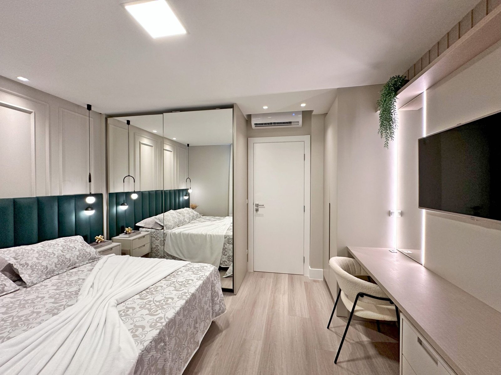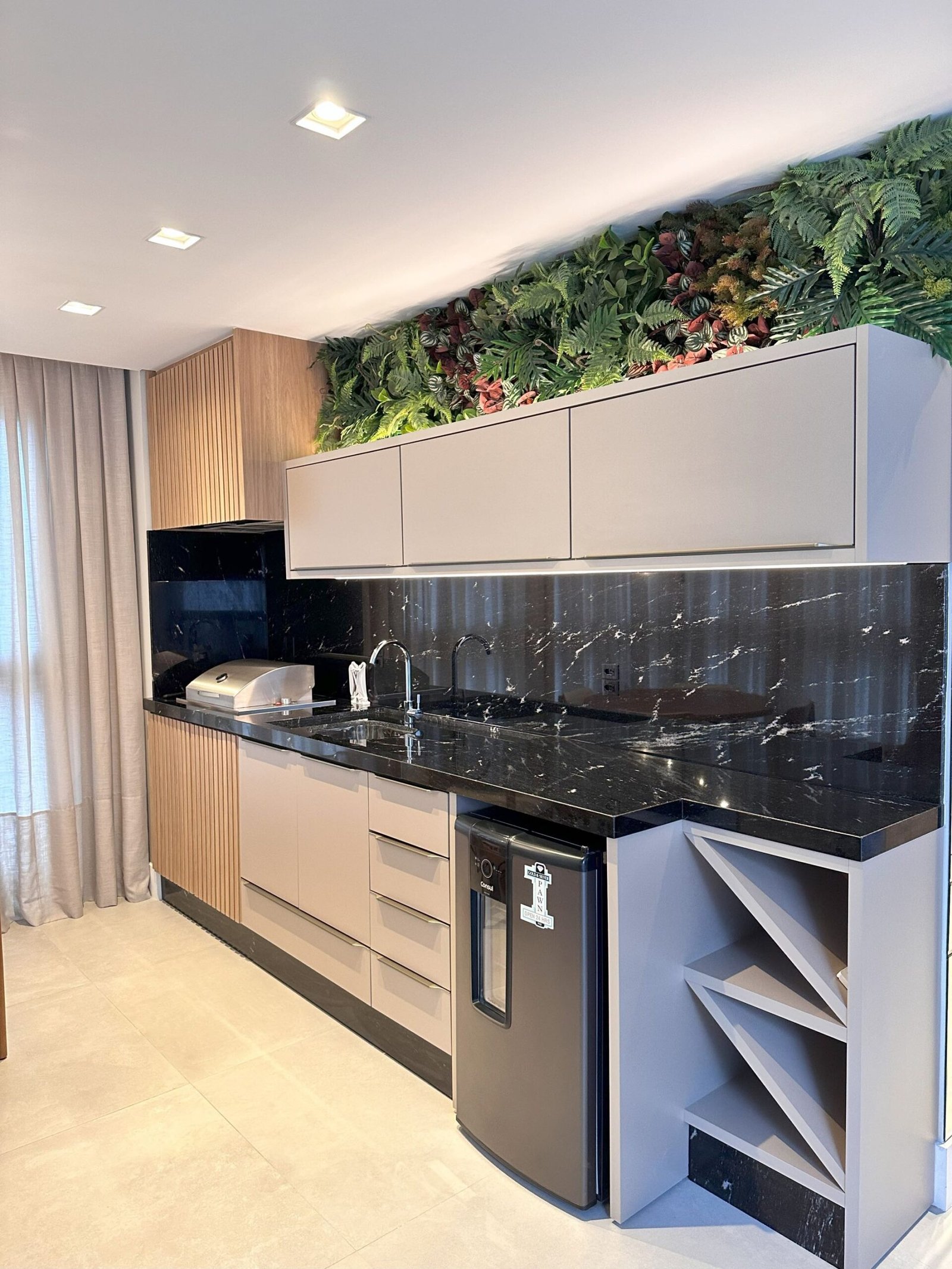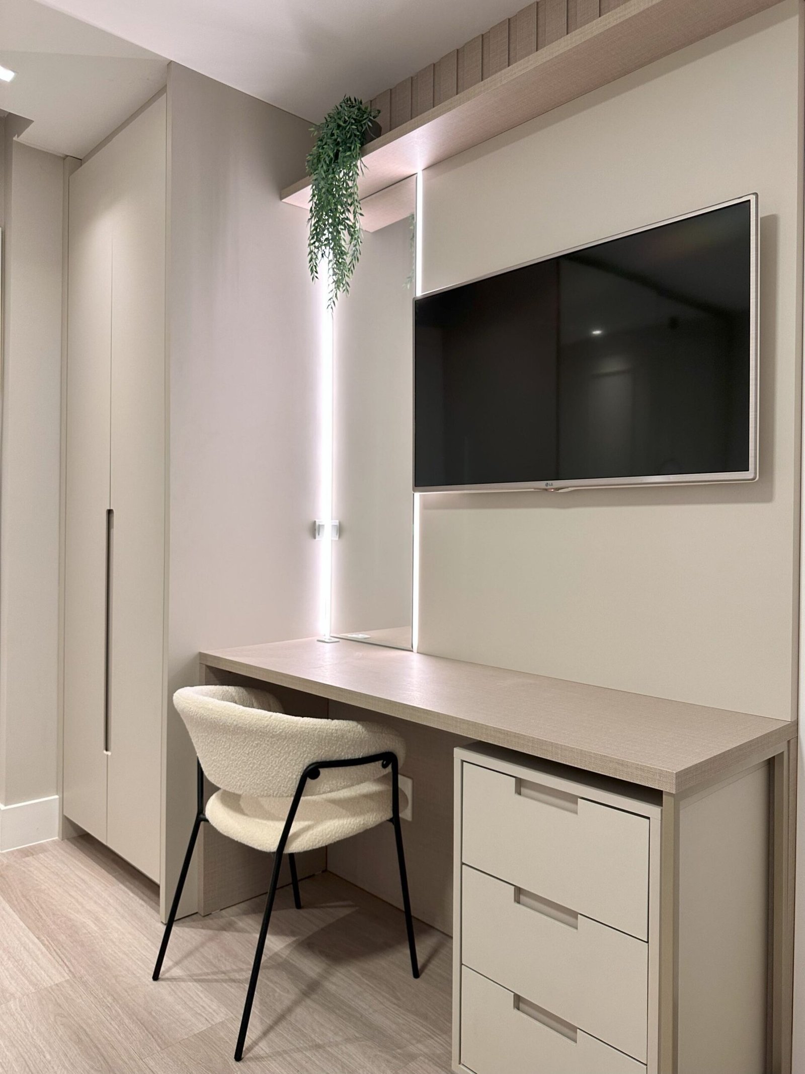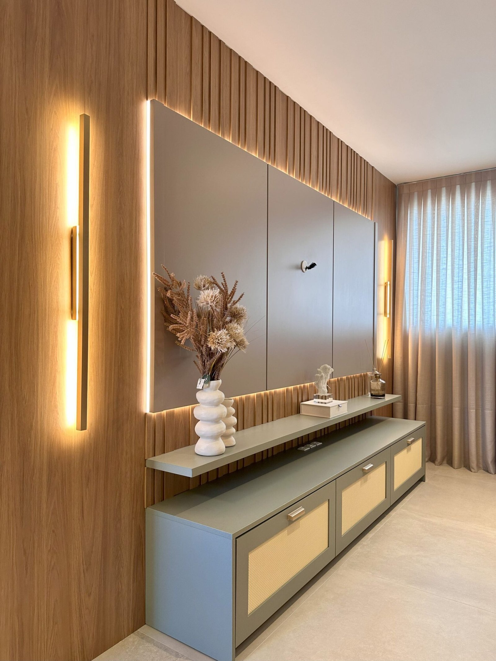 Para este projeto foi adotado um estilo moderno, trazendo aconchego através do amadeirado e uma decoração com objetos e cores que remetem à natureza dentro dos ambientes. Trata-se de um frente mar compacto, mas que possui tudo o que precisa para não deixar de ser funcional e lindo.
