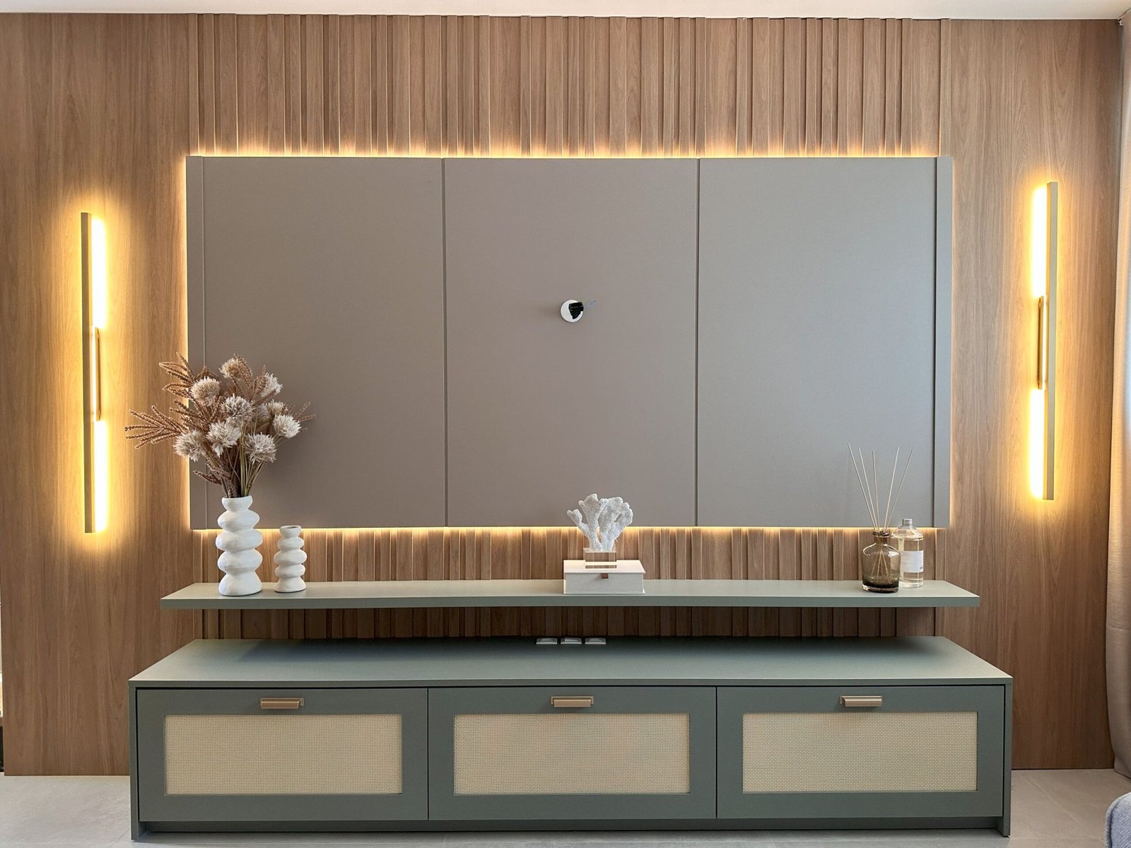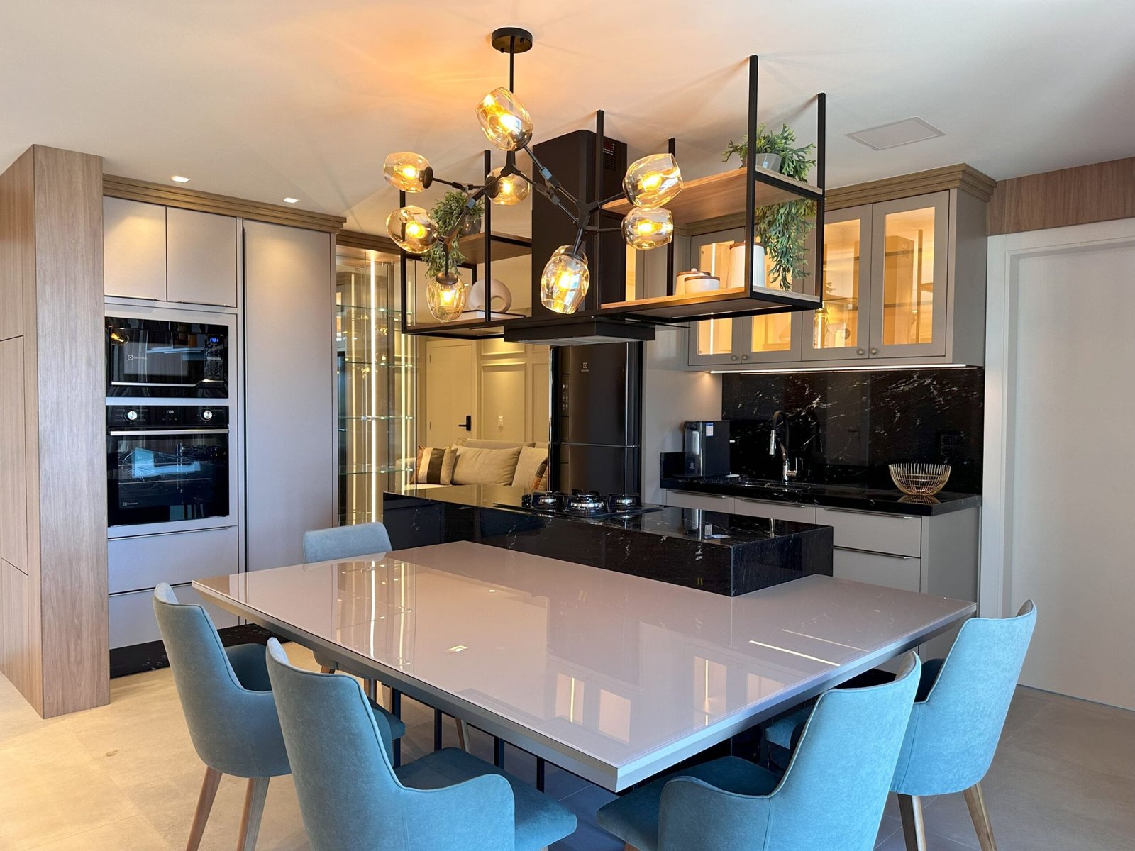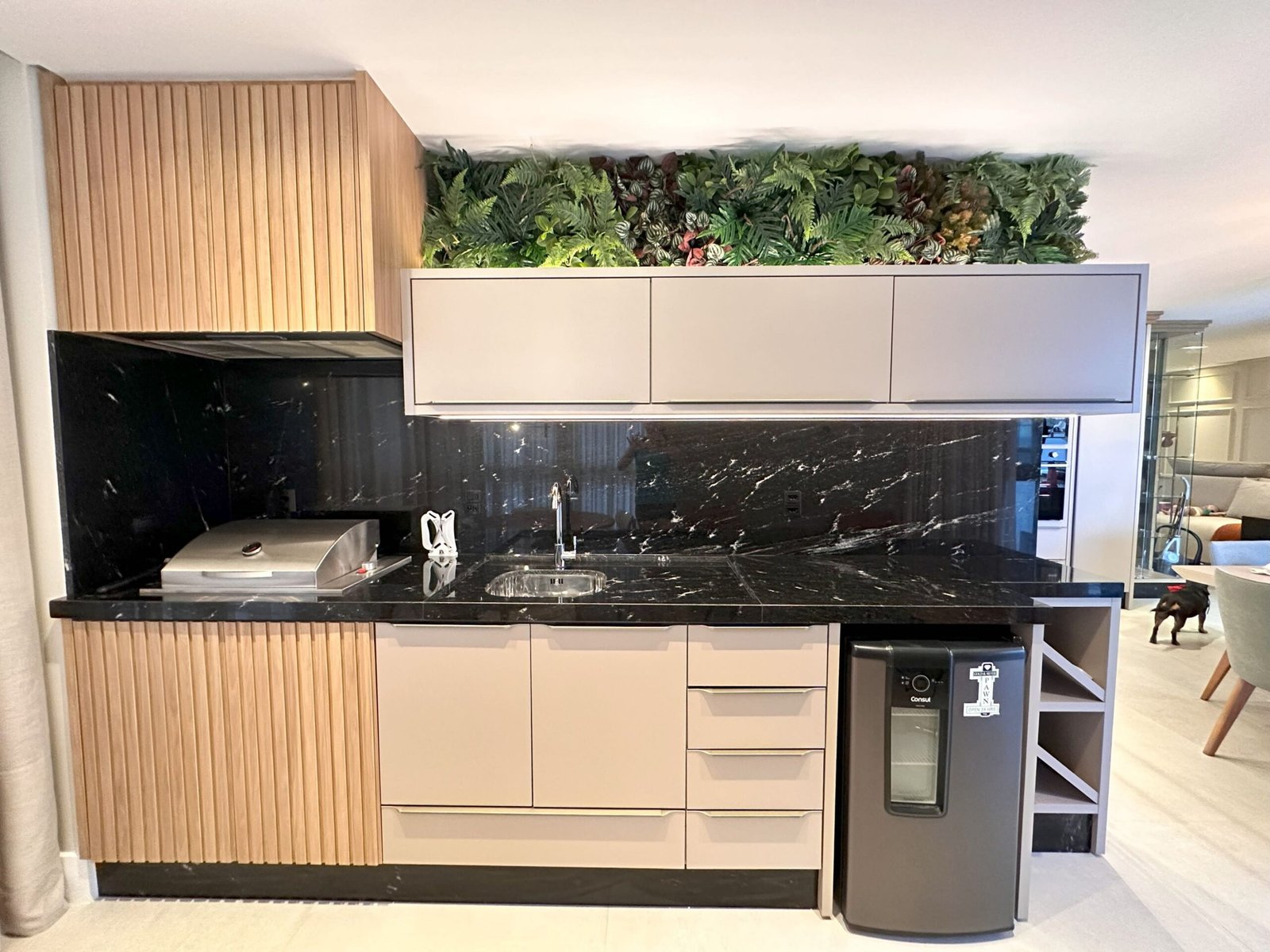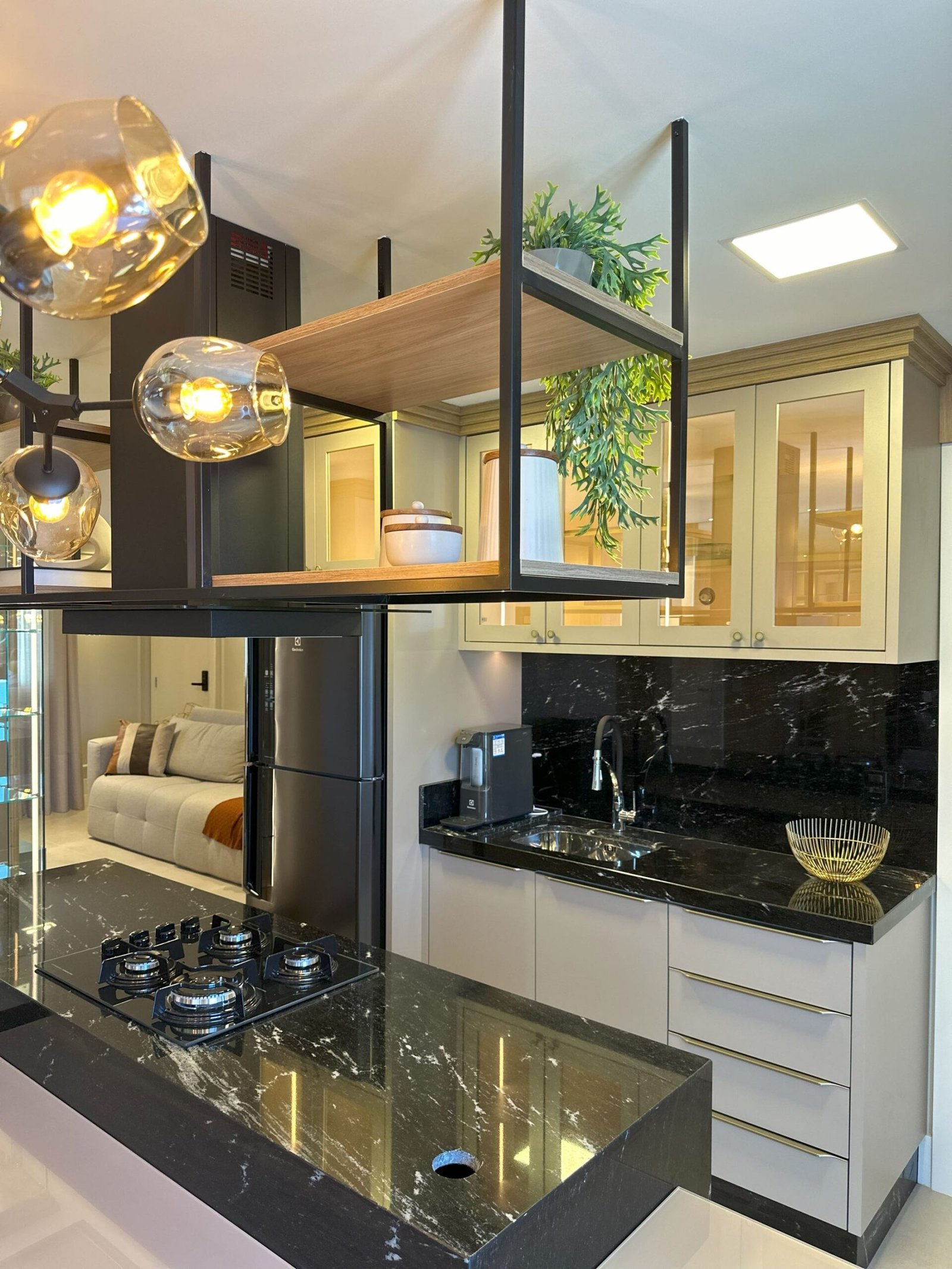 Para este projeto foi adotado um estilo moderno, trazendo aconchego através do amadeirado e uma decoração com objetos e cores que remetem à natureza dentro dos ambientes. Trata-se de um frente mar compacto, mas que possui tudo o que precisa para não deixar de ser funcional e lindo.